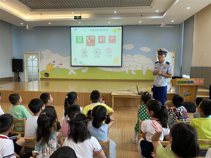 此次安全生产月,园部根据上级部门下发的通知及时召开园务会议部署相关工作,制定安全生产月活动方;校园内利用挂横幅、电子屏播放宣传画报等形式创设了浓厚的安全生产月氛围;园部邀请法制副校长组织开展了抵制非法集资的法治教育活动,结合安全生产月活动内容,定期召开安全生产月活动推进会,全园开展“反恐防暴我们在行动”的演练活动;结合当前的社会形式开展“防溺水专题教育活动”等安全生产月系列活动,各年级组也开展了形式多样的安全教育活动。小班年级组的“萌娃居家”安全月活动,借助精彩的绘本故事,或居家观察、亲子表演等形式,让孩子们进一步了解和掌握了小心电器、远离煤气、食品卫生、防拐防骗等安全知识居家安全。中班年级组的“开开心心上学、安安全全回家”活动,请来了北塘交警队的黄警官来给中班幼儿进行交通安全宣教活动,通过课件引导幼儿了解马路上各种违法行为,孩子们在活动中大开眼界。大班年级组的“消防员叔叔进校园”活动,提高了幼儿主动探索、寻找日常生活中不能随便说的易引发火灾的物品,看火灾录相及贴近幼儿生活经验的几个片断,丰富幼儿安全防火知识,采用游戏形式,让幼儿在游戏中学会自救知识、技能。