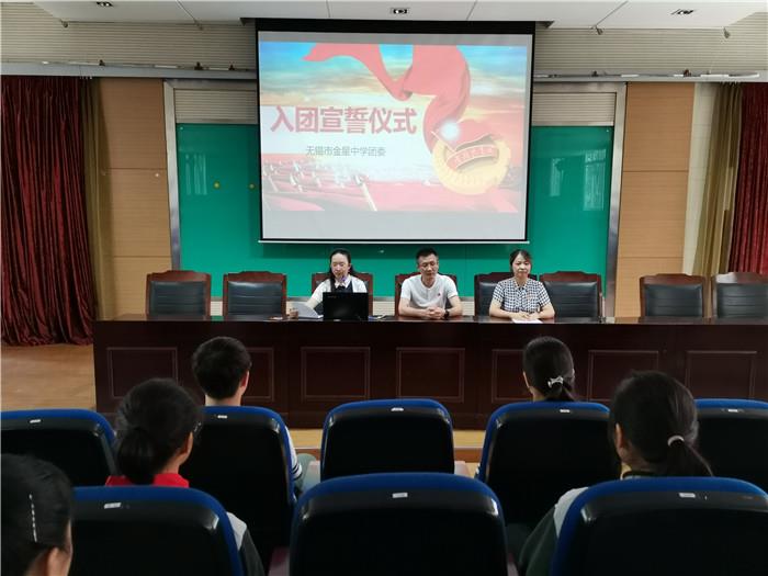 为进一步加强团员意识教育,使青年学生感受加入团组织的光荣感,增强对团组织的归属感,6月30日,无锡市金星中学在阶梯教室隆重举行新团员入团宣誓仪式,学校党支部副书记程俊明、副校长姚菲、团委书记杨雯婕以及22名新团员参加活动。