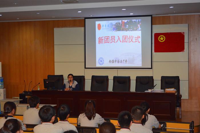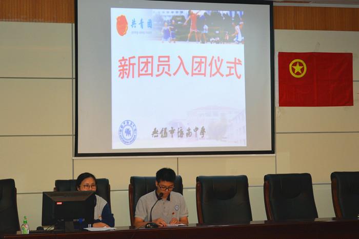 7月13日,无锡市塘南中学举行新团员入团仪式,学校德育主任肖俊毅、团委书记于海芹、团员代表以及新发展的二十名团员参加了该仪式。