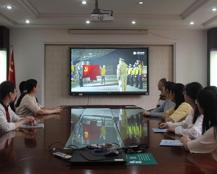 7月15日,无锡市夹城里中心小学全体党员教师在会议室观看了由市委组织部专门制作的战疫电视片《锡城战疫党旗红》,用心感悟这场没有硝烟的战争里,无数奔走在防疫最前沿的逆行者,守望相助,温情满满的抗疫故事。