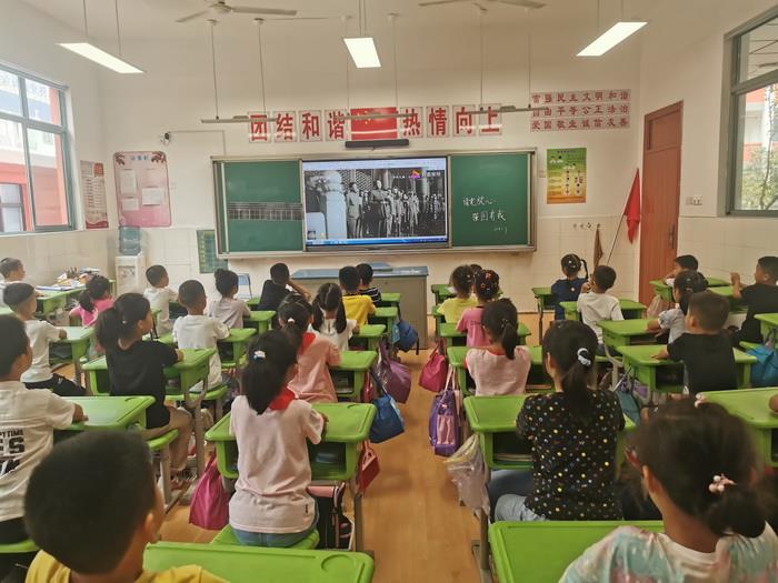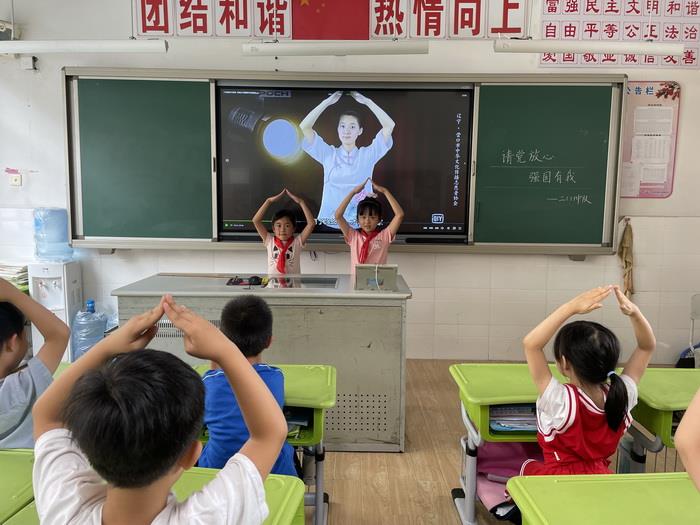 在“请党放心,强国有我”主题队活动课上通过重温影片《开国大典》,队员们更深刻地了解了先辈们的丰功伟业,更加深刻感受到今天幸福生活的来之不易。