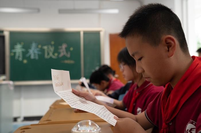 拆开家长大朋友给队员们的一封封亲笔信,里面虽是朴素的文字,但是无一不寄托着殷切的希望和真挚的祝福。承载着爸爸妈妈的期待和嘱咐,队员们在卡片上写下自己对青春的感悟,一笔笔记录下队员们的远大理想,炯炯目光里映照出来的是坚定和勇气。