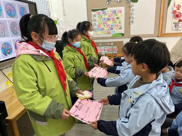 小学的哥哥姐姐带着孩子们“云游”小学校园,并对孩子们对于小学生活的疑问进行解答。听完哥哥姐姐的介绍,小朋友们纷纷表示小学的校园有了初步了解。对顺利升入小学,适应小学的生活和学习有了更多的期待和信心。作为乒乓球特色学校,哥哥姐姐带领孩子们玩起了乒乓球大变身、彩绘乒乓球等游戏。快乐的时间总是过得很快,哥哥姐姐们要回小学了,半天的幼小衔接活动充满了欢乐、满足与希望。离别前,哥哥姐姐为小朋友们戴上红领巾、学敬队礼,体验作为少先队员的自豪感,并鼓励弟弟妹妹:“加油!我们在小学等你们。”弟弟妹妹也为哥哥姐姐送上了精心准备的小礼物,献上“优秀志愿者”荣誉证书,感谢哥哥姐姐的帮助与陪伴。