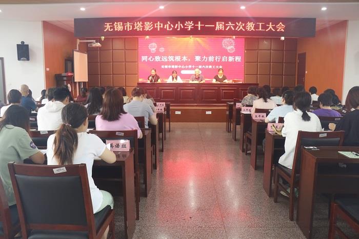 为进一步优化学校管理制度,激发教师的工作积极性、主动性和创造性,充分发挥教师参与民主管理的作用,近日,无锡市塔影中心小学第十一届六次教工大会在三楼多功能厅如期举行,大会在庄严的国歌声中拉开帷幕。本次大会由工会副主席包红武主持,大会主题:“同心致远筑根本,聚力前行启新程”。