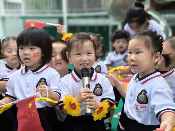 中班的孩子们精神饱满、歌声嘹亮,他们用质朴而有力的童声,唱响《祖国祖国我们爱你》《我们是祖国的花朵》……一首首歌曲,传递出幼儿对祖国妈妈最纯真的爱,展现了新时代幼儿朝气蓬勃的精神风貌。