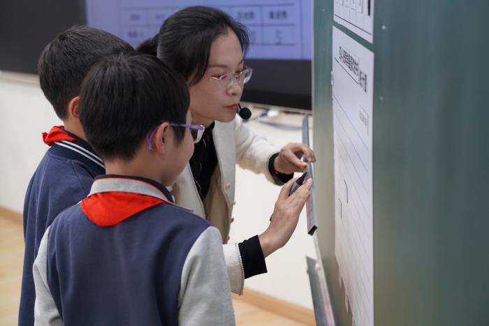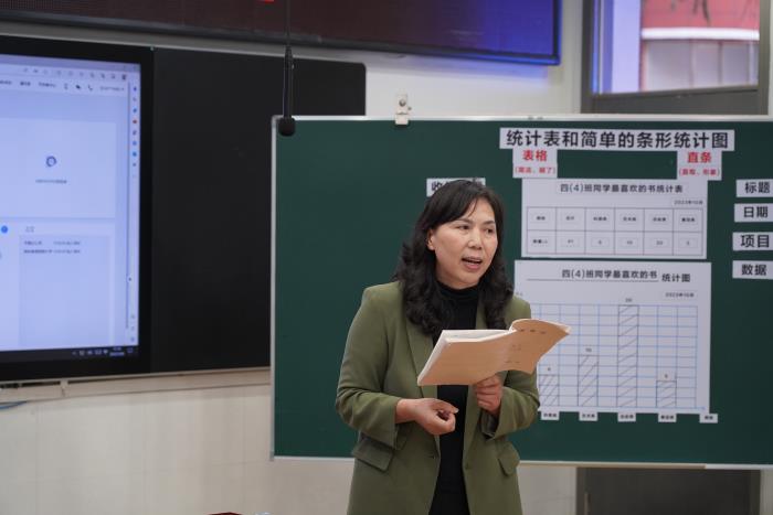 本次活动以从“自主建构”到“多元表达”为主题,先由江苏省无锡通德桥实验小学的马丽莉老师带来观摩课《统计表和简单的条形统计图》。马丽莉由图书角情景入手,充分利用导学单,引导学生在分享交流和思辨质疑中,自主体会统计表和条形统计图的特点。课中穿插拓展性练习,学生发展了分析数据和处理数据的能力。