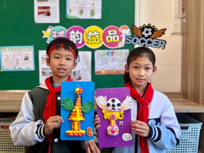 学生在老师的带领下,叩开了足球世界的大门:学习各类足球知识,了解球星背后的动人故事,探索球衣上数字的奥秘……唤起学生对足球世界的向往。丰富的足球特色课程:设计比赛奖牌、制作迷你球场、彩绘球衣、创作足球吉祥物、制作庆典蛋糕等更是让学生动手动脑,乐在其中。