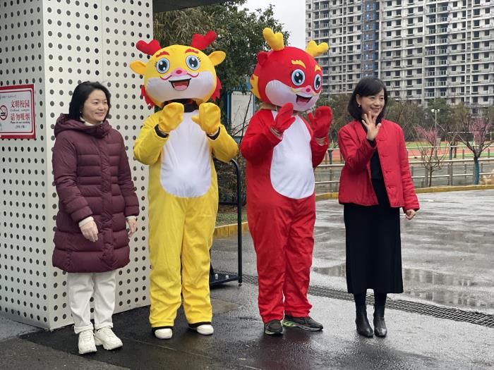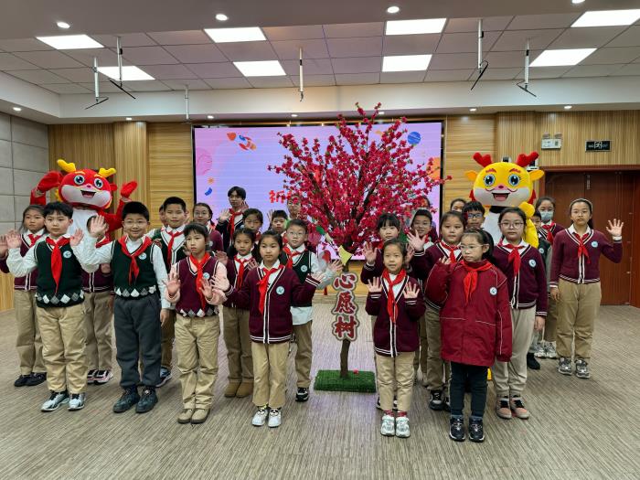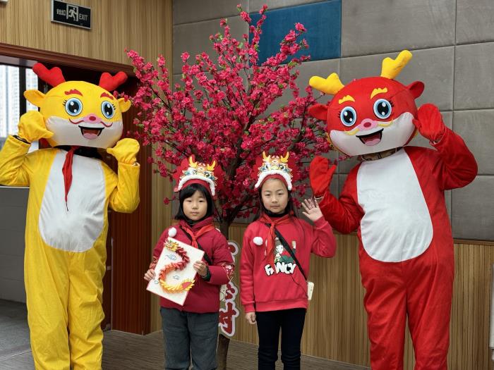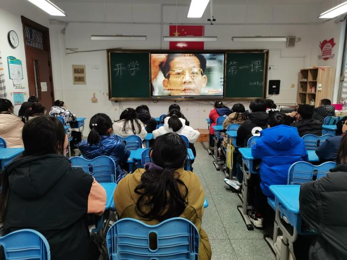 早晨入校时,龙宝宝惊喜登场,热情地跟每一位师生打招呼,仪式感满满。开学典礼上的节目更是精彩纷呈:年俗分享、寻访交流、诗歌朗诵、“福娃”送福、“播种”心愿……午会期间,每个班级都在认真观看《开学第一课》,汲取先辈力量,争当理想追梦人。