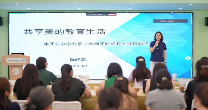 上午,“骨干攻坚营”聚焦教学实践,与名师工作室联合开展教研。无锡市五爱实验幼儿园刘洁老师与无锡市机关幼儿园顾倩萍老师分别展示了大班数学活动《趣游惠山古镇》和《三角形变变变》;随后,“骨干攻坚营”的老师们与陈栩、周迎新两大名师工作室成员展开分组交流,进行了深入的讨论;最后,殷娴院长从数学学科本质与儿童认知发展规律出发进行专业点评。下午,“管理种子营”迎来首场思想盛宴,陈晓萍园长以《共享美的教育生活——集团化办学背景下教师团队成长的建设路径》为题,带来了一场融教育智慧与管理艺术于一体的专题讲座。