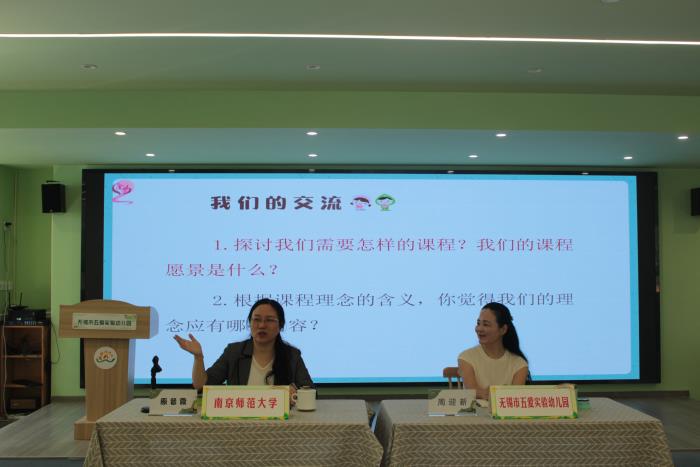 针对教师们的分享,以及园所的课程实践,原教授指出:课程应贴近生活并具有挑战性,不仅是生活的缩影与升华,还能够帮助幼儿在解决问题中积累经验,促进全面和谐发展。同时,原教授还和南师大高校支持项目团队的王程老师共同为教师们系统阐述了幼儿园课程理念。她强调,本课程以“培养完整儿童”为核心目标,构建一个有机统一的理念体系。