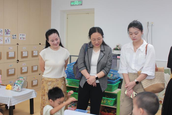清秋日朗,园蕴成长。原晋霞教授团队与五爱实验幼儿园骨干教师们在周园长的陪同下,深入幼儿园班级,沉浸式观摩了区域活动中幼儿的自主游戏与教师指导。活动室里,主题课程正焕发着光彩,中班正围绕“我们回家啦”主题进行课程实施,孩子们化身小小探索家,在游戏情境中通过自主探索与社会性互动实现认知建构与发展。大班正值“厉害了我的国”主题活动,孩子们拿起小兵模型进行排兵布阵,并在生动演绎后进行故事创编。