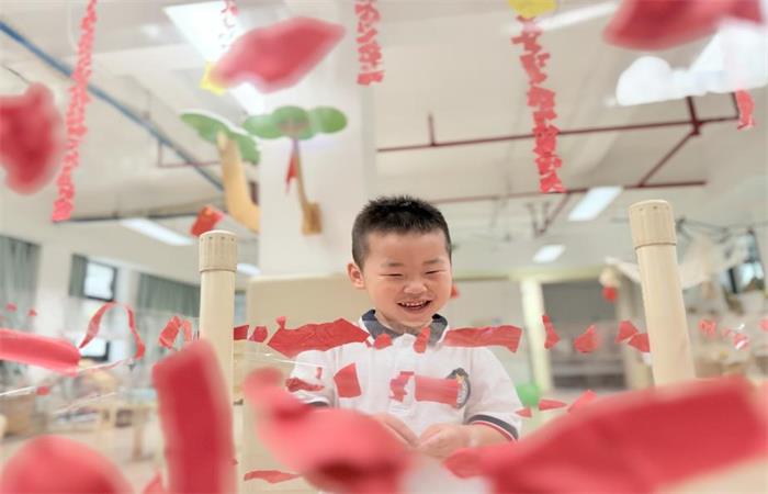 小班年级组的孩子们同样沉浸在节日的喜悦中。他们在老师的帮助下,用一双双小手认真地悬挂起五彩斑斓的彩灯,将教室装扮得格外美丽。同时,孩子们还将一颗颗闪闪发亮的红色五角星贴在主题墙上,简单的动作中饱含着对祖国妈妈最纯真的爱与祝福,现场氛围温馨又感人。