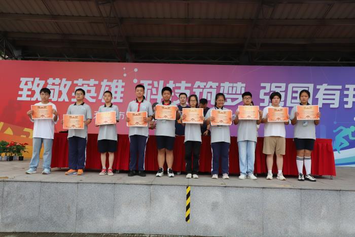 本届运动会以“致敬英雄,科技筑梦,强国有我”为主题。伴随着《运动员进行曲》的激昂旋律,鲜艳的五星红旗迎风飘扬,国旗队、校旗队、会徽队、校园吉祥物金金与星星、鲜花彩旗队、各班代表队踏着整齐的步伐进入会场,他们的脸上洋溢着自信与期待,彰显着金星学子蓬勃向上的精神风貌。射箭队的表演和教师方阵的入场更是掀起了一轮又一轮的热浪。运动会上欢呼与呐喊交织,拼搏与汗水碰撞,让我们一起回顾运动会的精彩瞬间吧!