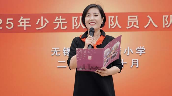 杨小萍副校长向全体新队员表示热烈祝贺,并提出殷切期望。她鼓励队员们要热爱祖国、勤奋学习、锻炼身体,继承和发扬少先队的光荣传统,努力成长为有理想、有本领、有担当的强国少年。