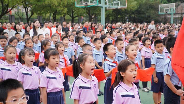 仪式在铿锵有力的出旗曲中正式开始。旗手与护旗手步伐整齐,高擎队旗庄严入场。全体队员齐声高唱《中国少年先锋队队歌》,激昂的旋律回荡在校园的每一个角落。