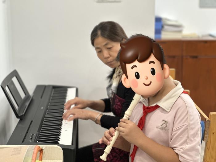 如今,走进资源教室,目光所及满是温暖的细节:浅灰和浅蓝的文化布置与奶白的墙壁搭配,柔和不刺眼;集体教学区的圆桌犹如粘合剂,将老师的心紧紧贴住每一个特需学生的心灵;个别辅导区的电子钢琴奏响了贝多芬的《欢乐颂》,飘出了孩子们稚嫩的歌声。