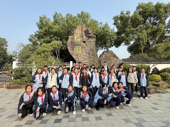 清晨,阳光洒满大地,同学们怀着兴奋的心情在操场集合,整装待发。在班主任老师和导游的带领下,大家首先抵达无锡梅园风景区。