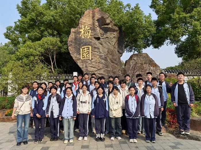 步入景区,古朴典雅的建筑与错落有致的园林景观相映成趣。同学们跟随导游的脚步,认真聆听关于梅园历史渊源,了解荣氏家族与梅园的故事,感受深厚的人文底蕴。同学们三五成群,在开阔的草坪上休憩交流,在曲折的回廊间拍照留念,欢声笑语回荡在山水之间。