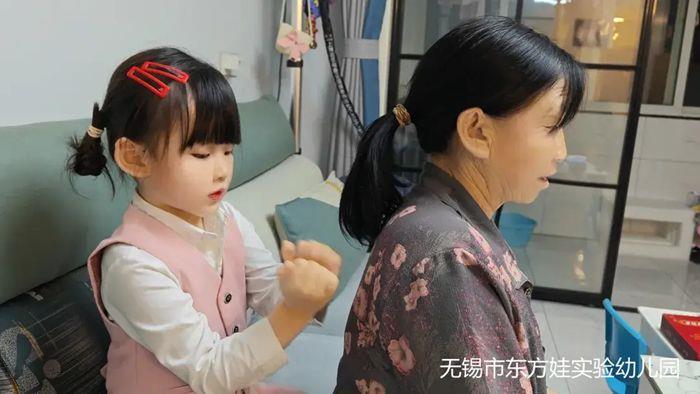 展孝心行孝义孩子们制作了孝心打卡表,宝贝们发起倡议,给爷爷、奶奶、外公、外婆洗洗脚、敲敲腿、捶捶背;向他们说一句“谢谢您”“我爱您”;为他们念一首儿歌、讲一个故事、做一次家务劳动。孩子们选取秋日里最具代表性的橘子,DIY出一把自带清新橘香的“养生锤”。轻轻敲一敲肩颈,能缓解疲惫;深深闻一闻橘香,愉悦身心。孩子们和爷爷奶奶一起登高,听他们讲过去的故事。孩子们化身“祝福小工匠”,和老师一起动手做了独一无二的“福寿安康包”。