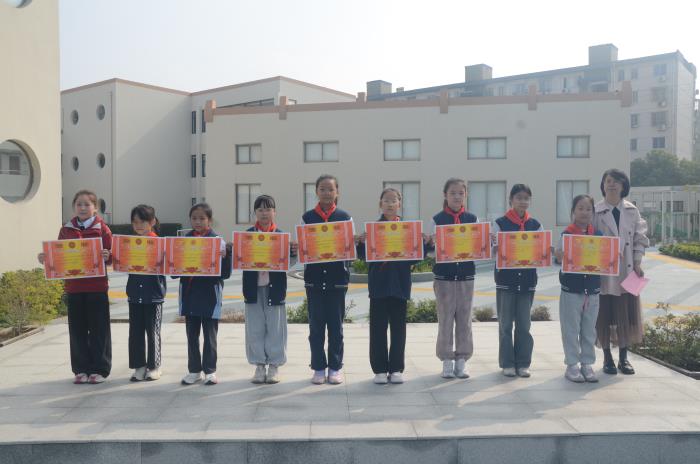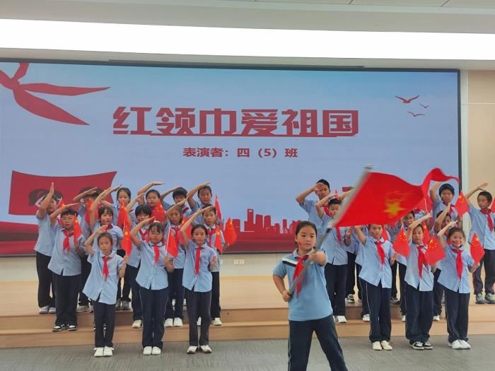 一年级的小萌新们用清澈的童声演绎了充满童趣与爱国情怀的歌曲,展现了他们从稚嫩到自信的成长蜕变。他们在《祖国祖国我们爱你》中表达爱国之情;在《祖国祖国真美丽》中表达对祖国的自豪之感;在《国旗国旗真美丽》中表达了对国旗的敬仰。 二年级的同学们通过手势舞、创意队形等形式,展现了新时代少年的多元表达。他们用清脆的声音唱响《童心向党》,表达爱国之情;用《最美的光》表达对未来的美好期盼;用《功夫》传递积极向上的情感态度。 三年级同学们的表演充满惊喜,既有气势磅礴的爱国赞歌,也有融入流行元素的创新编排。他们用《追光少年》展现少年的青春活力;用《大中国》抒发对祖国深深热爱之情;用《红星歌》表达对革命先辈的敬仰。 四年级的同学们用歌声致敬红色经典。《大中国》传递对祖国的热爱与身为中国人的自豪;《五星出东方》蕴含着他们对中华文化的自信;《闪亮的红星》表达出他们对祖国的赤诚之心。 五年级的同学们通过歌声串联起传统与未来,既有致敬革命精神的铿锵旋律,也有展望星辰大海的温暖吟唱。他们借《Sambalele》表达对世界多元文化的热爱与对生活的积极态度;在《万疆》中抒发对祖国的深情赞美与热爱;通过《在阳光下》展现在祖国阳光下成长的幸福。 六年级的同学们高唱祖国的赞歌,整齐划一地表达对祖国深深的爱。《当那一天来临》展现了小芦苗们对保家卫国军人的敬仰之情;《让我们荡起双桨》体现了他们对和平幸福生活的珍惜;《中国》抒发了他们对祖国的强烈认同与深深热爱。 颁奖仪式上,获奖班级代表登台领奖。当掌声雷动,奖状在阳光下闪耀时,每一位同学的脸上都洋溢着自豪与喜悦。