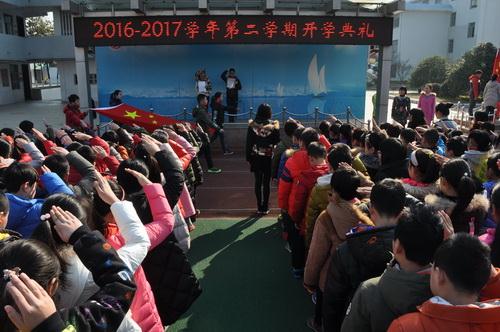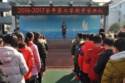 2月13日上午,江苏省通江实验小学的全体师生们在鲜艳的五星红旗映照下,欢聚在学校操场上,拉开了2016-2017学年第二学期开学典礼的序幕。